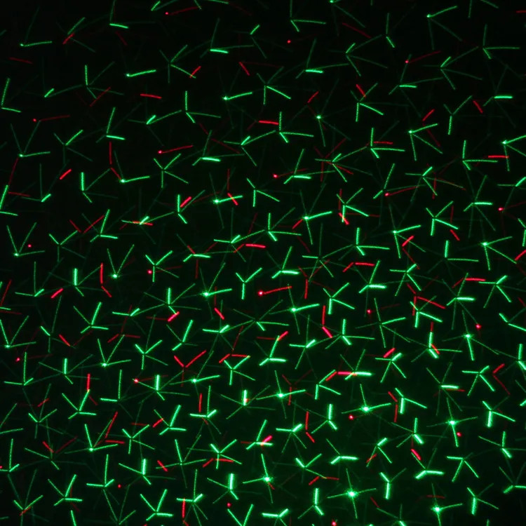 A készülék piros és zöld lézersugarakkal vetít dinamikus mintákat a falra, mennyezetre vagy akár füsttel telített térbe. A hangvezérelt üzemmódnak köszönhetően a fények a zene ritmusára változnak, így minden számhoz új vizuális élményt kapsz – teljesen automatikusan.