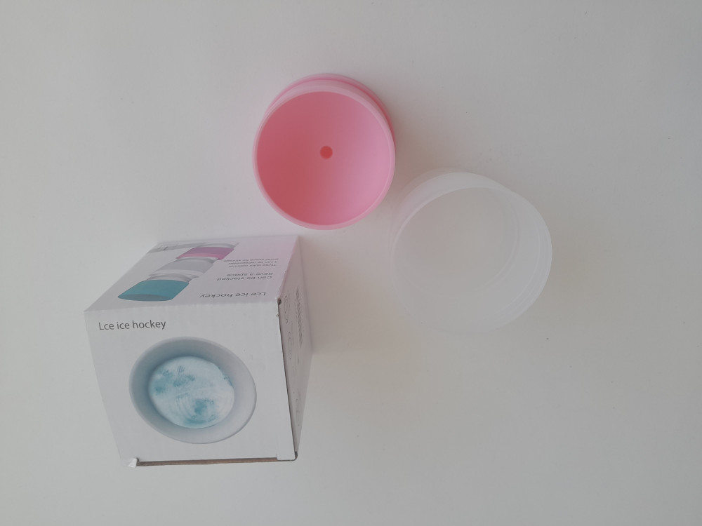 Ein Eiswürfelbereiter in Puckgröße, mit dem Sie Ihre Getränke erfrischen können. An heißen Sommertagen kühlt ein großer Eiswürfel jedes Erfrischungsgetränk oder jeden Tee lange.
